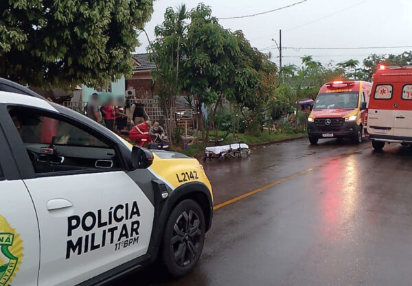 Câmera flagra colisão entre moto e carro em Campo Mourão; veja