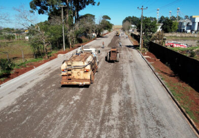 Obras de pavimentação no Parque Industrial de Campo Mourão alcançam 92% de execução e devem ser concluídas até fevereiro de 2026.