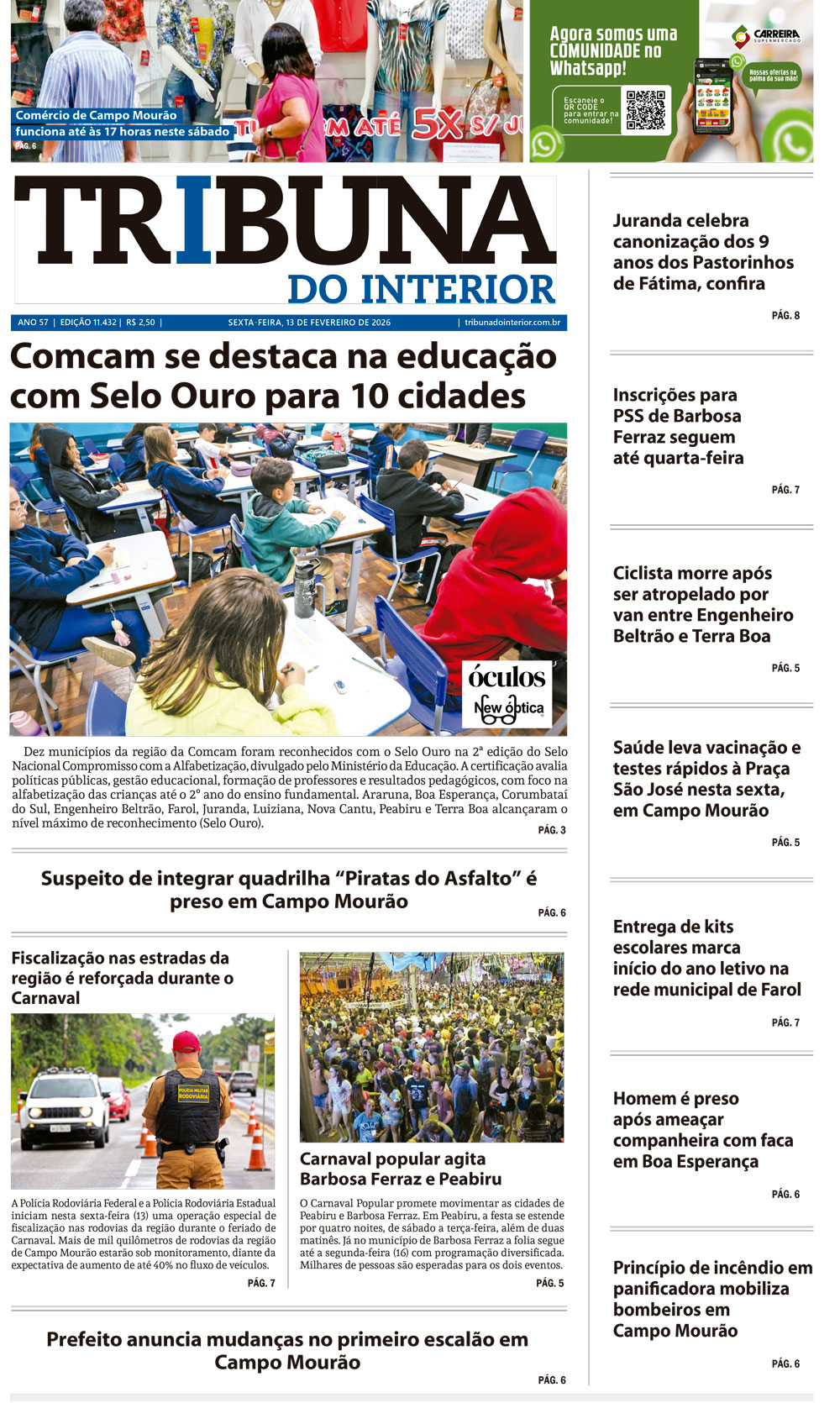Classificados e Publicidade Legal – 13/02/2026