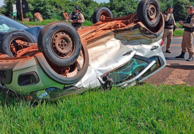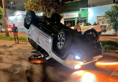 Motorista perde controle, bate em árvore e capota carro em Campo Mourão