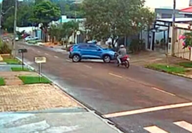 Motociclista fica ferido em violenta colisão em Campo Mourão; veja o vídeo