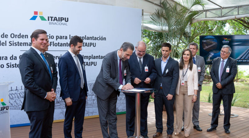 A Itaipu Binacional autorizou nesta quinta-feira (13) o início da implantação de uma usina solar flutuante na lâmina d’água do reservatório. Os cerca de dois mil painéis fotovoltaicos serão instalados em uma área de 7 a 10 mil metros quadrados, inferior a um hectare, no lado paraguaio da usina. O prazo para a execução do serviço é de 150 dias; outros 180 dias serão adicionados para assistência técnica, treinamento e aceitação final do produto.