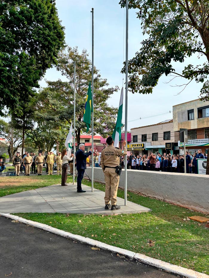 Entre os presentes, estavam o prefeito Douglas Fabrício, que hasteou a bandeira do Brasil, a vice-prefeita Fátima Nunes, responsável pelo hasteamento da bandeira do município, e o comandante do 11º Batalhão de Polícia Militar (BPM), tenente-coronel Aguinaldo Gentil de Alencar, que hasteou o pavilhão do estado do Paraná. Também participaram vereadores, secretários e representantes do Corpo de Bombeiros, Tiro de Guerra e demais autoridades civis.