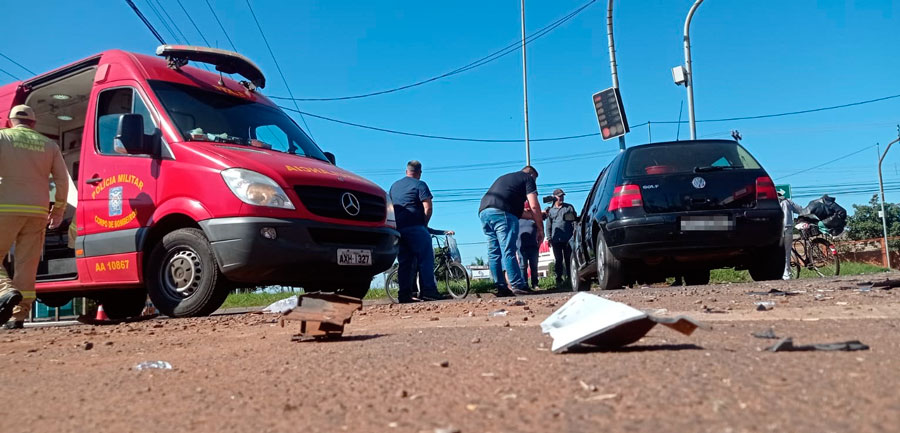 Um acidente de trânsito envolvendo três carros – Renault Sandero, Volkswagen Golf e um Toyota Corolla – , deixou uma mulher grávida de cinco meses ferida e um homem, em Campo Mourão, neste sábado (1).