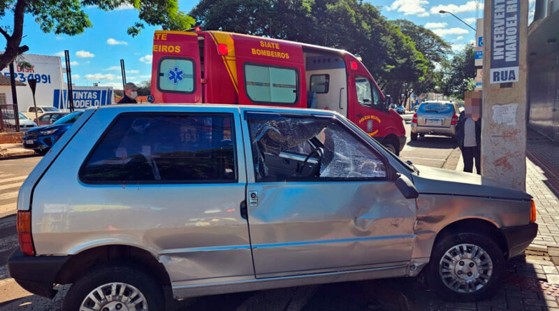 O acidente aconteceu na Avenida Capitão Índio Bandeira, cruzamento com a Rua Interventor Manoel Ribas, no centro de Campo Mourão. O motorista do carro seguia pela rua, atravessando a preferencial. Ele ainda tentou evitar o choque com o motociclista e acabou batendo em um poste na sequência
