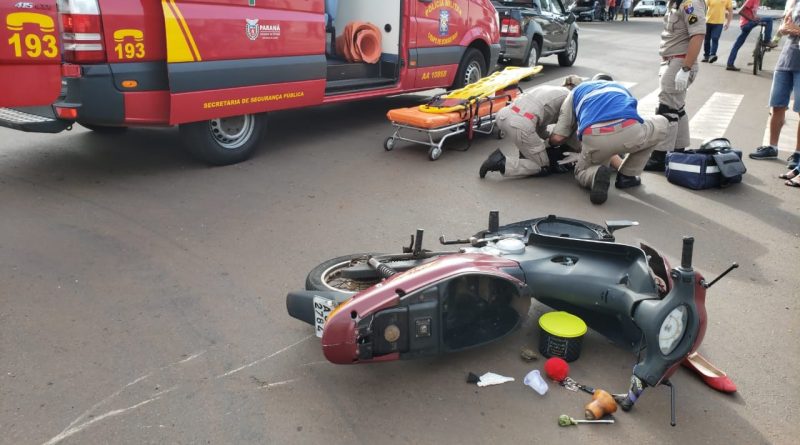 Acidente na área central de Campo Mourão deixa motociclista ferida