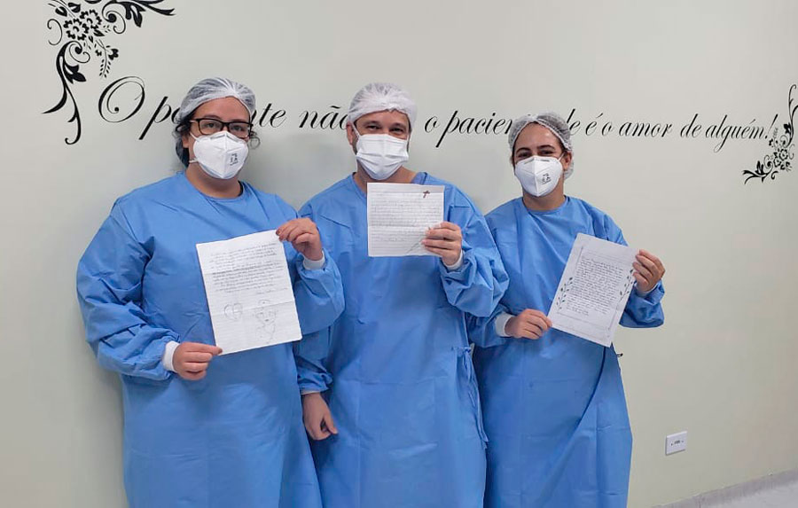 “Foram cartas com recados emocionantes, simples, do coração, próprios de alunos que reconhecem o valor que a equipe de saúde tem na atual situação de pandemia. E nossa equipe agradece aos alunos e a professora pelo carinho que foi transcrito nessas pequenas linhas”, escreveu a direção do hospital.