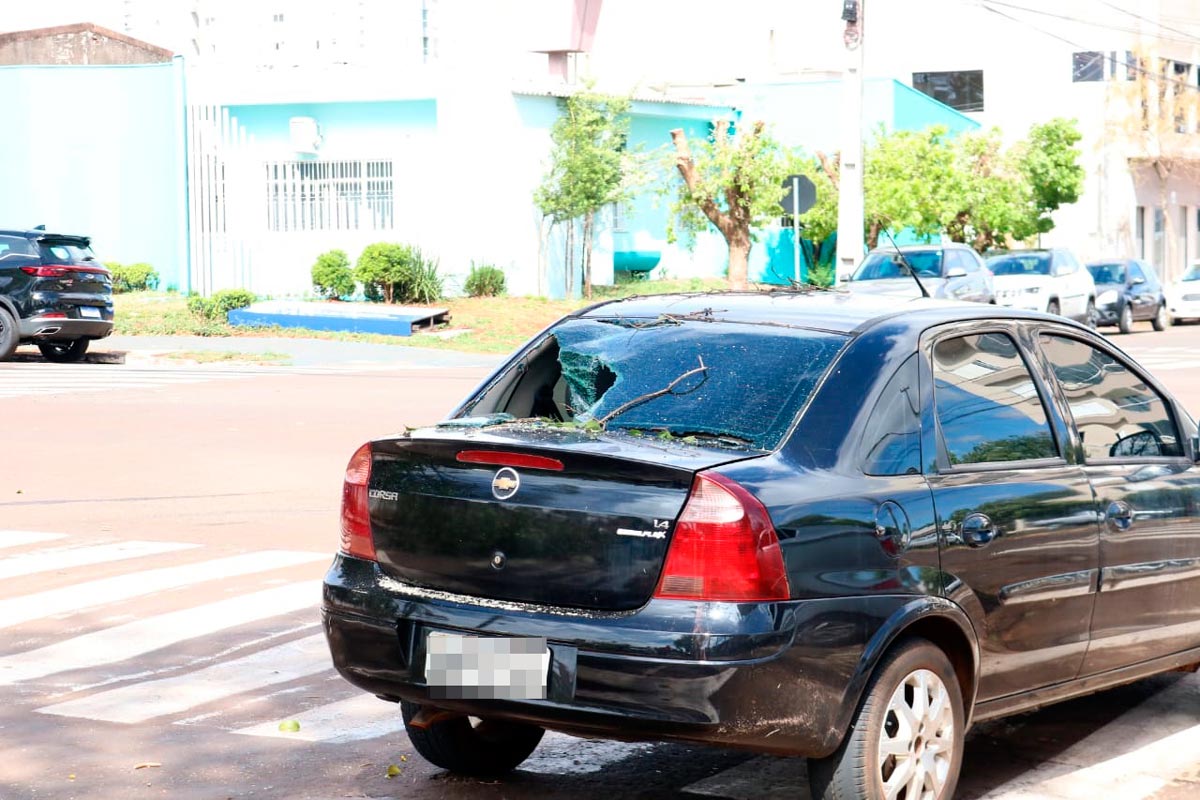 Galhos atingiram também o vidro traseiro de um Chevrolet Corsa, que quebrou com o impacto
