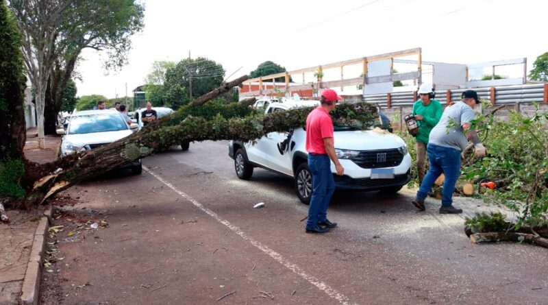 Árvore cai sobre dois carros no centro de Campo Mourão
