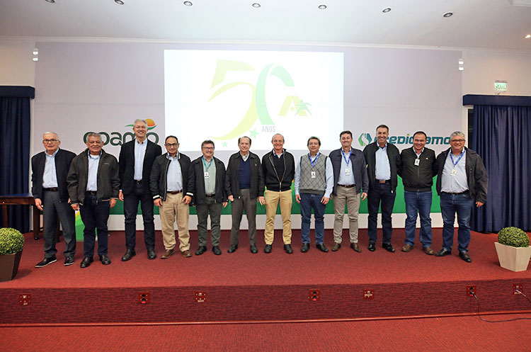 Fazendo parte da realização do Jogos dos Funcionários da Coamo (JIU), no sábado, 13, os diretores da Coamo, Credicoamo, Fups e da Arcam, e os ex-presidentes da Associação Recreativa dos Funcionários da Coamo (Arcam), participaram de ato comemorativo aos 50 anos da Arcam, completados exatamente nesse dia. A iniciativa que integra uma programação de atividades em todas as unidades da cooperativa perpetua a história desta associação que foi fundada há cinco décadas por 38 associados, sendo o idealizador e um dos fundadores, o engenheiro agrônomo José Aroldo Gallassini, presidente do Conselho de Administração da Coamo e da Credicoamo.