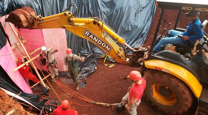 Paras as buscas, o tenente do Corpo de Bombeiros, Alex Boni, explicou que os bombeiros estão utilizando um sistema de ancoragem, já que a estratégia é descida ‘bombeiro a bombeiro’ fazendo a retirada manual da terra.