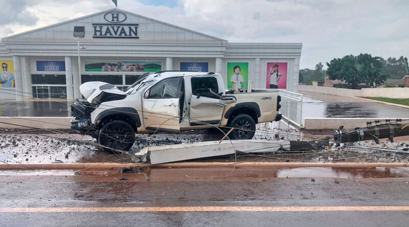 Conforme as informações apuradas, o condutor do veículo seguia pela perimetral quando perdeu o controle da direção. Com a pista molhada, a caminhonete rodou e só parou após bater violentamente contra o poste, que foi arrancado com a força do impacto. Na Amarok estavam o condutor e uma passageira. O motorista não sofreu ferimentos. Já a mulher ficou ferida e precisou de atendimento médico.