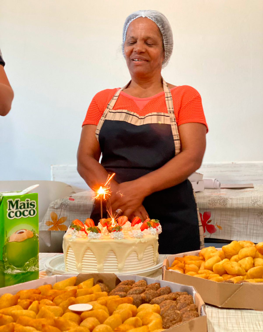 O aniversário teve direito a bolo com velinha, entre outros quitutes. Dona Abigail ficou emocionada com a surpresa. Como agradecimento, compartilhou o bolo com a equipe. “Desejamos que a senhora continue com muita saúde e tenha muitos anos pela frente com essa alegria ímpar”, disseram os oficiais a ela.