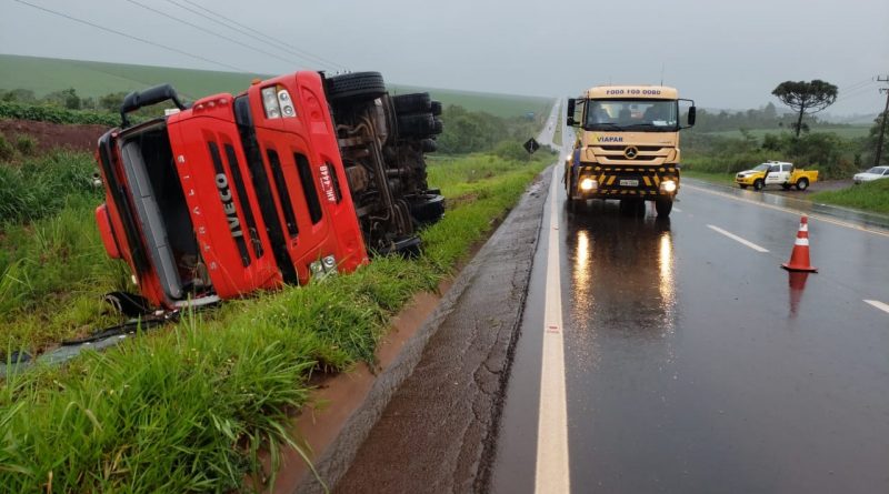 Carreta carregada com carne tomba entre Campo Mourão e Peabiru