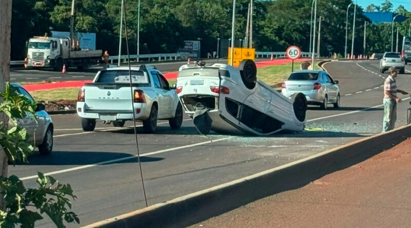 Carreta ‘fecha’ carro e provoca capotamento em Campo Mourão
