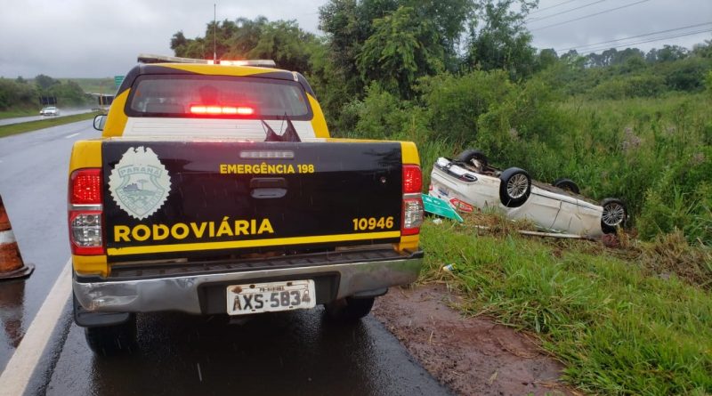 Carro aquaplana e capota entre Campo Mourão e Peabiru