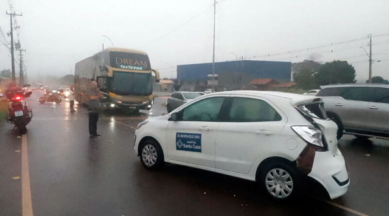 Carro da Santa Casa se envolve em acidente com ônibus em Campo Mourão