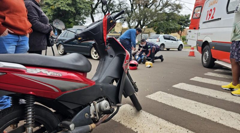 Carro invade preferencial, bate em moto e deixa mulher ferida em Campo Mourão