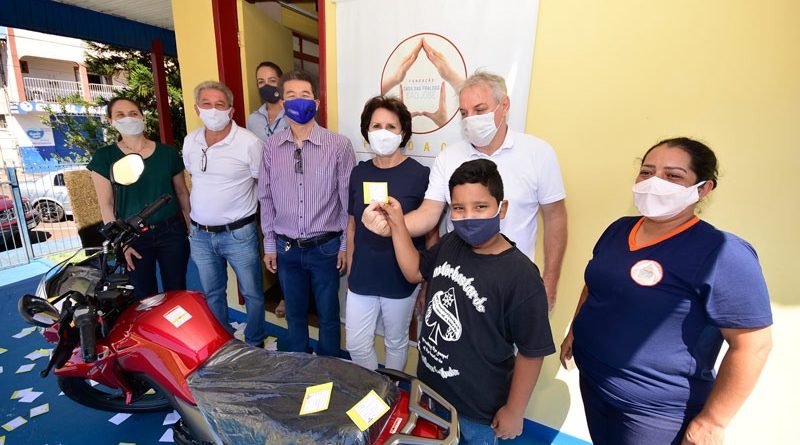 Tonny Marcelo Busquim foi o ganhador da motocicleta que a Casa das Fraldas São José, de Campo Mourão, sorteou na manhã desta sexta-feira (20/11) através de ação entre amigos promovida com o objetivo de arrecadar recursos para a entidade. O sorteio aconteceu em evento aberto ao público realizado na sede da instituição.