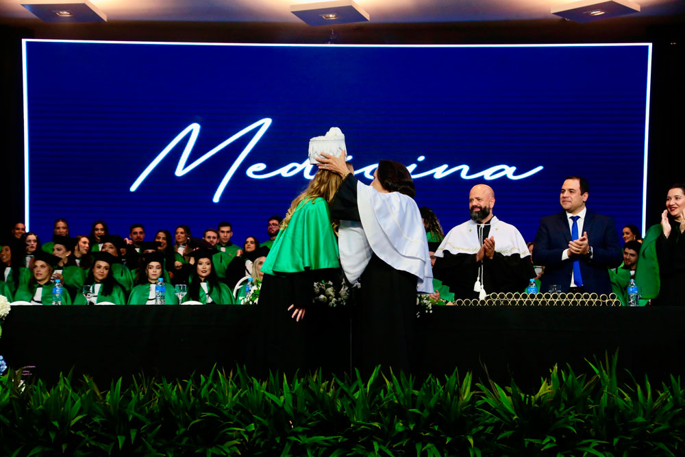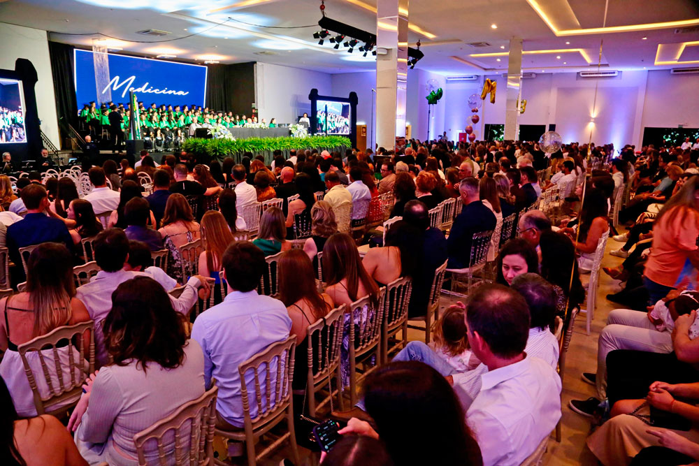 As celebrações começaram no Eco Campus do Integrado, com o descerramento da placa da turma e o plantio simbólico de uma árvore no Bosque Alumni, espaço dedicado às gerações de formandos em Medicina. Em seguida, os estudantes e seus familiares participaram de uma confraternização antes da solenidade oficial, realizada às 19h30.