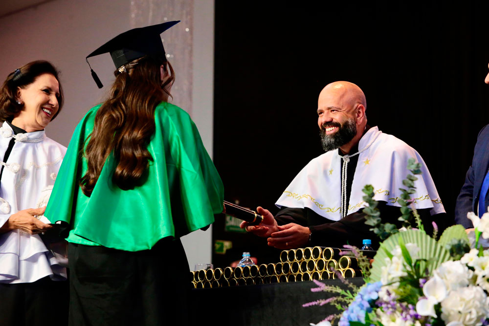 “Vim de Belém seis anos atrás para estudar no Integrado. Saí de casa com muitos sentimentos misturados e enfrentei quatro dias de viagem de ônibus até chegar em Campo Mourão, e afirmo que cada etapa valeu a pena. Minha mãe esteve comigo em todos os momentos e, hoje, olhando para esse dia, sinto que esta formatura também é dela. Só tenho gratidão à minha família e ao Integrado, que me ofereceu uma formação que mudou minha vida. Agora é só felicidade. É hora de comemorar”, relatou o formando.