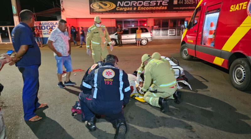 Com o impacto, o homem caiu no asfalto e bateu a cabeça, sofrendo ferimentos. Equipes do Corpo de Bombeiros e do Samu foram acionadas e prestaram os primeiros atendimentos no local. Após ser estabilizada, a vítima foi encaminhada a uma unidade hospitalar para avaliação médica.