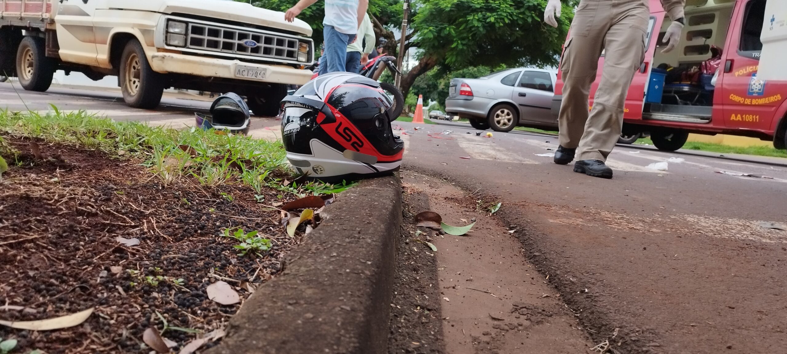 Duas pessoas de 29 e 31 anos, que estavam em uma motocicleta, ficaram feridas em um grave acidente de trânsito no fim da tarde dessa sexta-feira (24), na Avenida Guilherme de Paula Xavier, cruzamento com a rua Santos Dumont, centro de Campo Mourão.