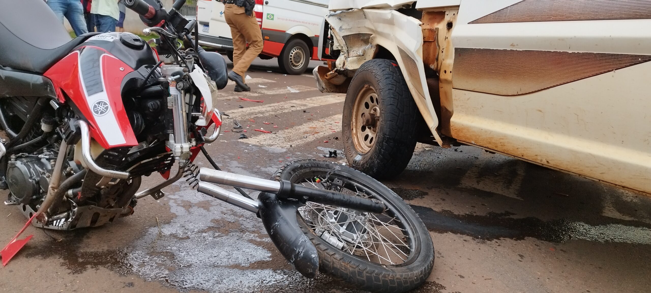 Duas pessoas de 29 e 31 anos, que estavam em uma motocicleta, ficaram feridas em um grave acidente de trânsito no fim da tarde dessa sexta-feira (24), na Avenida Guilherme de Paula Xavier, cruzamento com a rua Santos Dumont, centro de Campo Mourão.