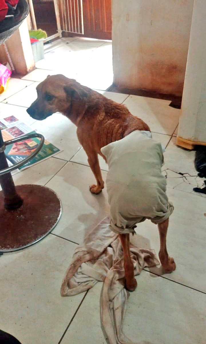 “Com o tempo, quando ele foi ficando mais velho, ficou dando esses problemas no intestino dele, de comer pedra, terra, tudo o que acha pela frente, e o intestino dele vai formando bolsas, que endurecem e não saem. Então, ele fica assim, eu tenho que levar ele para cirurgia”, explicou, acrescentando que a última intervenção, realizada recentemente, demanda cuidados redobrados em casa, inclusive com o uso de fraldas. “Agora, não dá mais para ele fazer cirurgia. Então, ele tem que ficar dentro de casa”, falou.