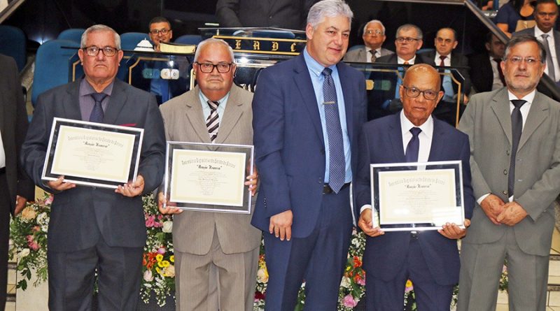 O deputado estadual Douglas Fabrício participou de uma celebração especial na sede da Igreja Assembleia de Deus em Campo Mourão, na noite do último sábado, 29, quando entregou homenagens de Menção Honrosa outorgadas pela Assembleia Legislativa do Estado do Paraná, aos pastores evangélicos; José Matias de Oliveira, Israel Berbet, Cosme Teixeira Maciel (falecido no último dia 26 de fevereiro e representado por familiares) e José Anunciação dos Santos, que permaneceu durante 53 anos e oito meses atuando como pastor presidente do Campo Eclesiástico da Assembleia de Deus em Campo Mourão . As homenagens alusivas a jubilação de pastorado foram indicadas pelo vereador Edilson Martins e foram entregues em sessão especial marcada pelo posse do José Aroldo dos Santos, que assumiu a função de Pastor Presidente substituindo José Anunciação. A programação especial contou ainda com as presenças dos prefeitos Tauillo Tezelli (Campo Mourão e Ângela Kraus (Farol), vereadores Sidnei Jardim e Cabo Cruz. A solenidade de posse foi presidida pelo Pastor Perci Fontoura (Presidente das Igrejas Evangélicas Assembleias de Deus no Paraná).