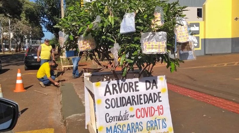 A pandemia de Coronavírus despertou também o espírito de solidariedade em muitas pessoas. Entre as ações, chama atenção a da empresária Ines Saes. Sensibilizada com a situação de quem não pode comprar uma máscara, ela confeccionou várias, embalou cada uma e colocou em uma árvore em frente a empresa, na Avenida Capitão Indio Bandeira.