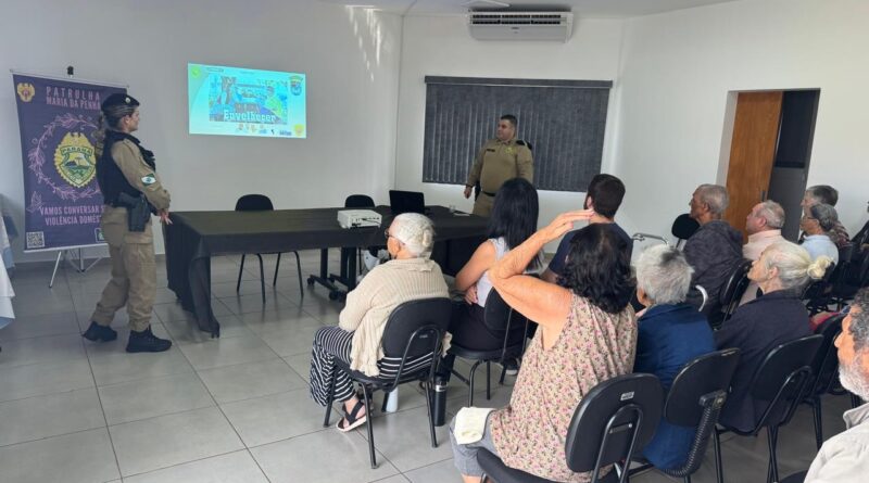 Em mais uma ação da Operação Virtude, a equipe da Patrulha Maria da Penha, vinculada ao 11º Batalhão de Polícia Militar (BPM), de Campo Mourão, realizou a palestra intitulada “Enfrentamento à violência contra a pessoa idosa” em Campo Mourão.