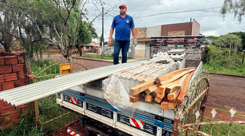 Famílias atingidas por temporal em Campo Mourão recebem telhas para reconstrução de casas