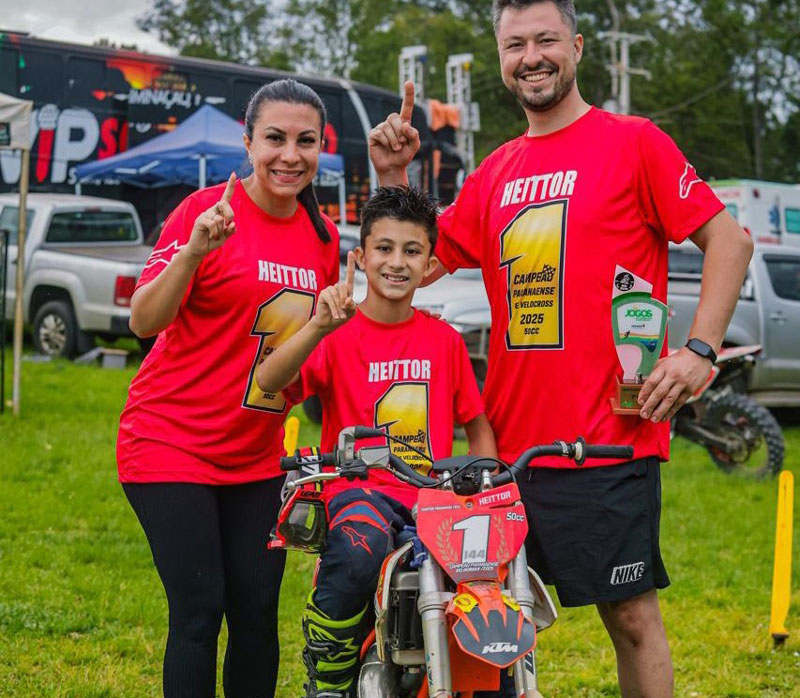 Heittor ganhou sua primeira moto com apenas um ano de idade e, já aos quatro, disputava campeonatos brasileiros, paranaenses e regionais pelo Paraná. O jovem piloto demonstra aptidão técnica acima da média para a idade. O pai explicou que ele mantém ritmo forte nas largadas e adapta-se rapidamente a diferentes pistas. “Embora enfrente adversários mais velhos, demonstra confiança e maturidade competitiva”, falou.