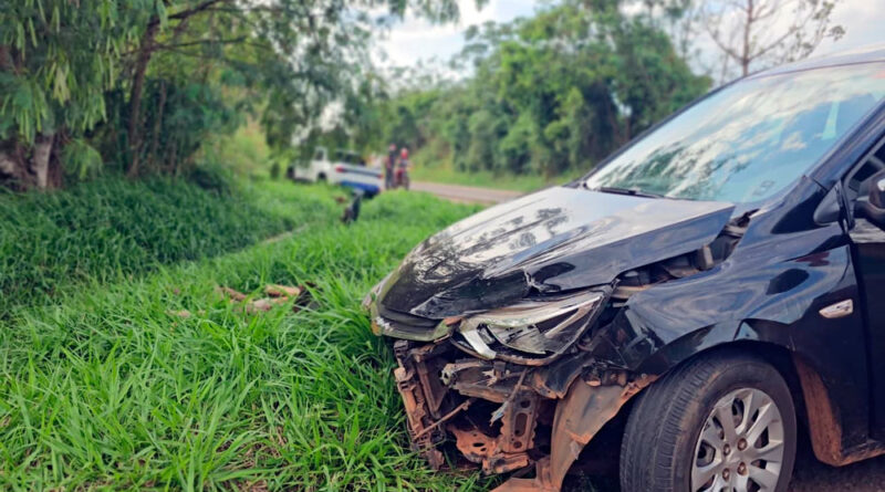 Um acidente na tarde desta sexta-feira (7) envolvendo um Chevrolet Ônix e uma picape Chevrolet Montana deixou um homem ferido na rodovia BR-487 (Estrada Boiadeira).
