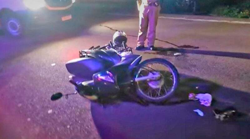 Jovem fica gravemente ferida após cair de moto ao ‘rampar’ lombada