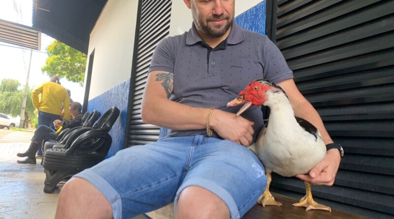 Juninho é um pato. Mas ele não sabe disso. Nasceu este ano e, desde então, foi adotado pelo filho do empresário Wilshely Lopes, João. Ele pretendia o criar em casa. Mas o pai não aceitou a ideia. Ficou na casa da avó, a idealizadora da vinda do bicho. Acontece que ela mantém duas empresas, junto à sua residência. E não é que Juninho escolheu “fiscalizar” os trabalhos! Agora, o pato permanece todos os dias, em horário comercial, em frente ao Gelo Sapeca. Ele entrou numa gelada, literalmente.