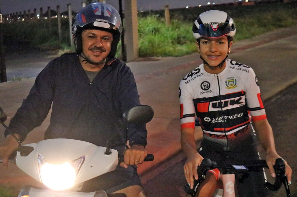 A primeira bicicleta dela não foi comprada no impulso. Ao procurar a loja do Juliano César dos Santos Teixeira (diretor técnico da WK Team Ciclismo), ouviu que precisava ter certeza. “Inicialmente, o Juliano não me deixou comprar. Falou que eu tinha que ter certeza se eu iria gostar mesmo. Então me emprestou uma bike. Andei e gostei. Aí ‘fiz’ a cabeça do meu pai para comprar uma e não parei mais”, falou. Desde então, a rotina mudou. “Meus treinos eu cumpro de acordo com uma planilha elaborada pelo Juliano. Na escola, minhas notas estão boas. Estou me dedicando muito, tanto na escola quanto no ciclismo”, garantiu a atleta.