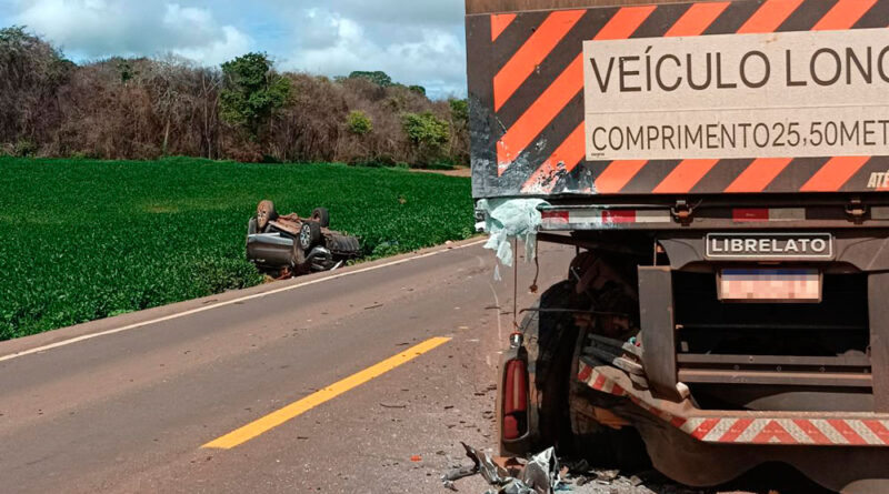 Um grave acidente ocorrido no início da manhã desta sexta-feira (19), em Querência (MT) matou uma mulher e um casal de crianças (filhos dela). A camionete Ford Ranger, dirigida pelo marido da vítima e pai das crianças, Robson Birkheuer, capotou após colidir na traseira de uma carreta. O motorista e um outro filho do casal sobreviveram e foram hospitalizados. Segundo informações, o estado de saúde deles é estável.
