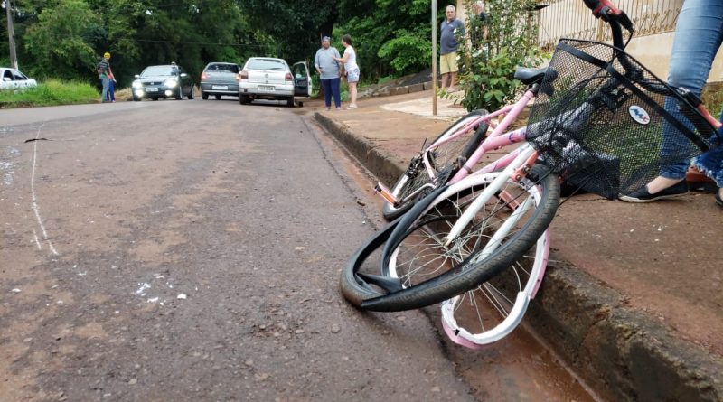 O GM Corsa, placas de Campo Mourão, trafegava pela rua enquanto a mulher, que estava de bicicleta, veio em sentido oposto, mas na contramão. O motorista, de 28 anos, disse que não viu a bicicleta e com o impacto, a ciclista com a filha foram carregadas por alguns metros.