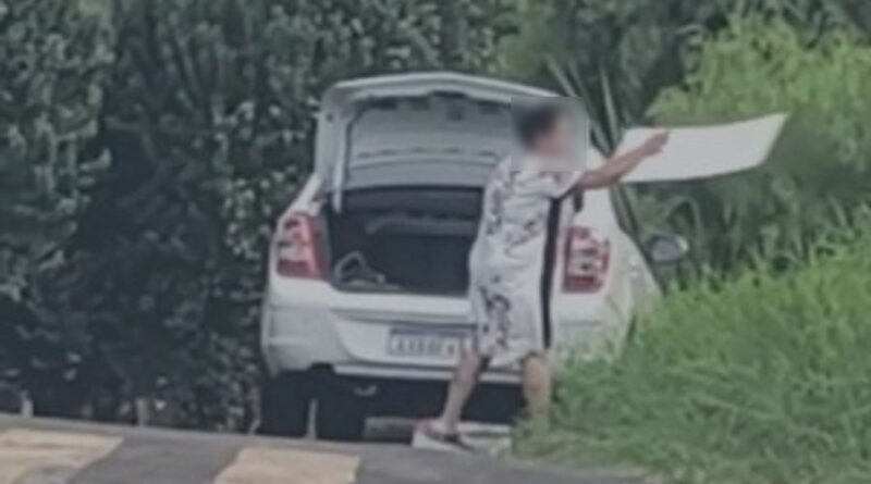 Segundo a denunciante, a mulher — com idade aparente entre 55 e 60 anos — estaciona o veículo ao lado do terreno com mato alto, desce, abre o porta-malas e passa a despejar o material (aparentemente restos de móveis velhos) no local. Pelas imagens encaminhadas à reportagem, o carro utilizado é um Chevrolet Prisma.