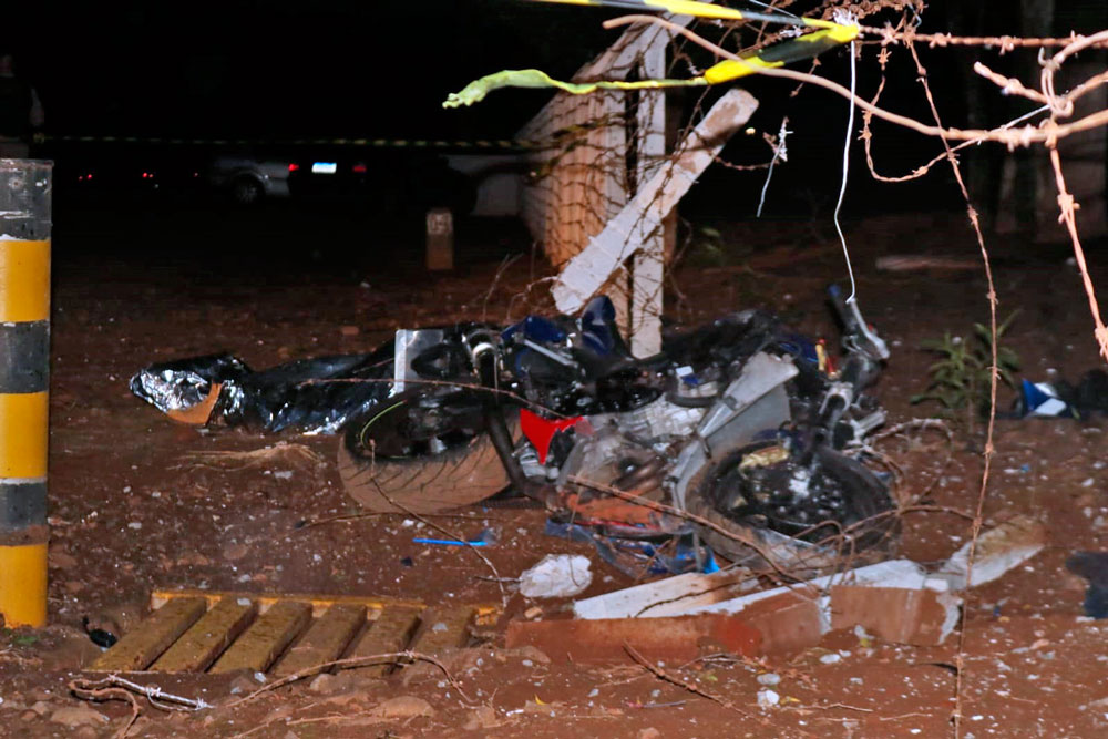 Com o impacto, a motocicleta atingiu pilastras de concreto e ficou completamente destruída. A vítima ficou presa à cerca. Um popular que presenciou o acidente tentou prestar os primeiros socorros, realizando manobras de reanimação até a chegada das equipes do Corpo de Bombeiros, que foram acionadas para o atendimento.