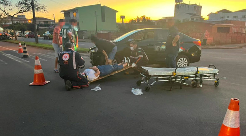 Motociclista fica ferida após bater em carro no centro de Campo Mourão