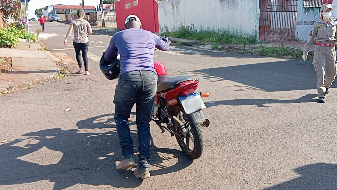 Uma motociclista ficou ferida após se envolver em um acidente de trânsito no início da tarde desta terça-feira (22), no jardim Cidade Nova. A colisão envolveu uma moto Honda CG Titan da mulher e um veículo VW Gol.