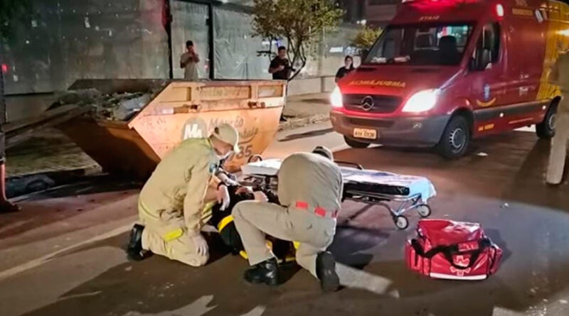 Motociclista fica ferido ao bater em caçamba no centro de Campo Mourão