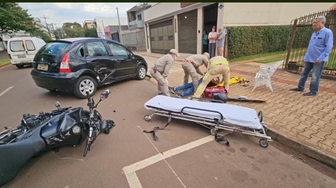 Motociclista sofre fratura no braço após bater moto em carro em Campo Mourão
