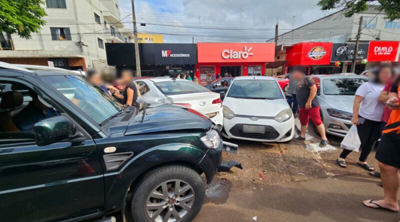 Motorista colide contra carros estacionados no centro de Campo Mourão