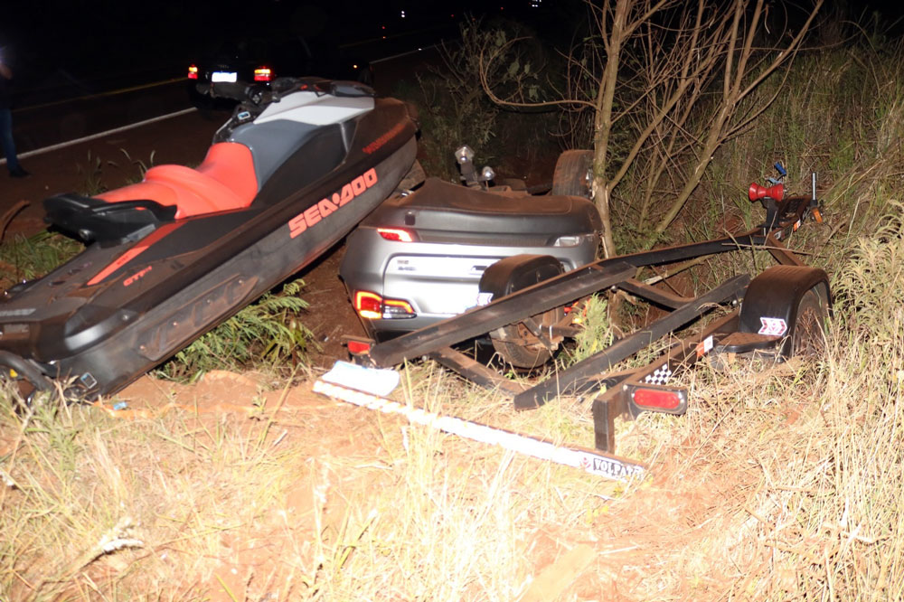 Um grave acidente na noite deste domingo (30) deixou o motorista de um veículo Jeep Compass ferido após ele capotar o carro na rodovia BR-487, nas proximidades do viaduto de Campo Mourão, próximo à indústria da Coamo. O carro transportava um jet ski Sea-Doo em uma carretinha acoplada. A vítima, um homem, não teve a identidade divulgada.