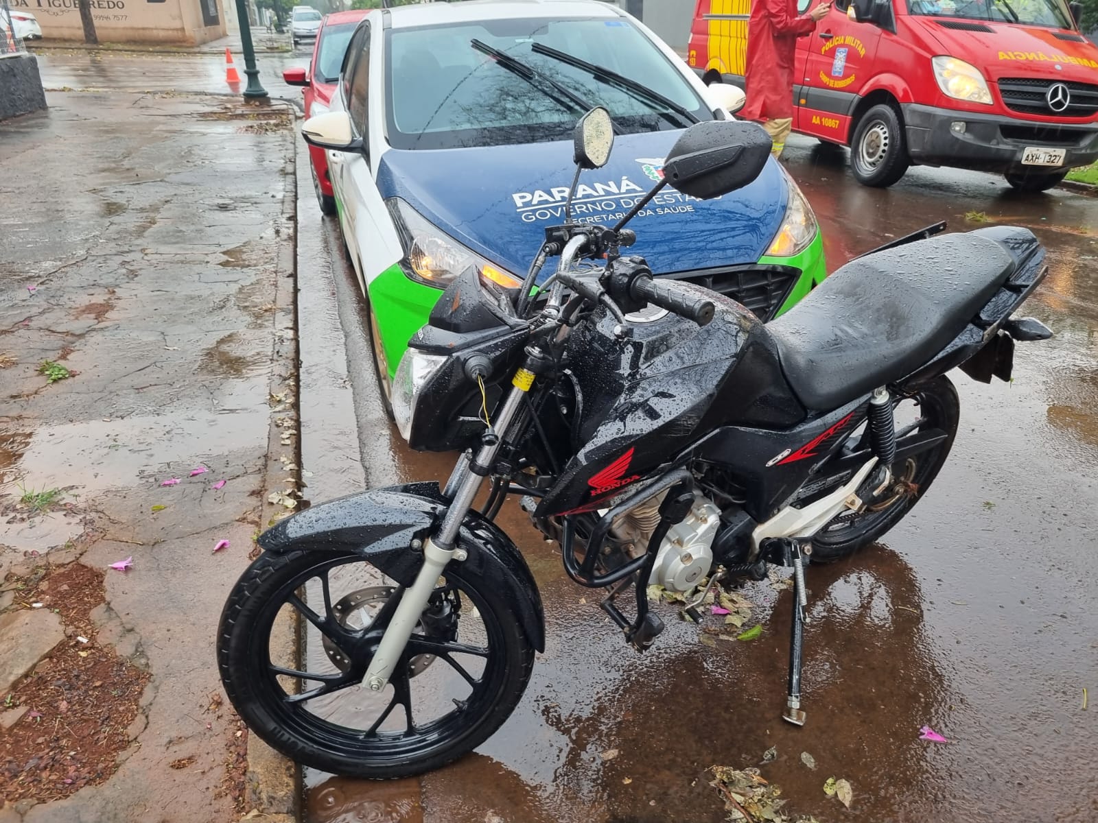 O motorista de um veículo Hyundai HB20 provocou um acidente de trânsito no centro de Campo Mourão, na manhã desta sexta-feira (25), após invadir uma via preferencial. Uma motociclista acabou ferida.