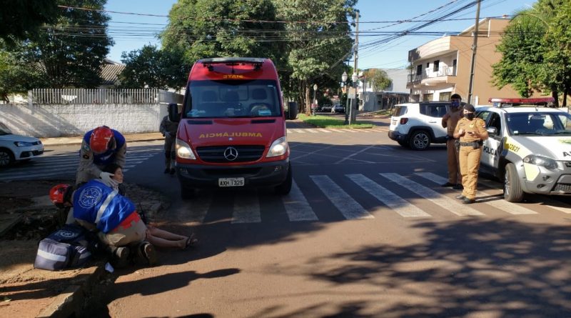 Uma jovem de 24 anos, condutora de uma motocicleta Honda CG/Titan 150 ficou ferida após se envolver em um acidente de trânsito por volta das 15h30 desta sexta-feira (17) na área central de Campo Mourão.